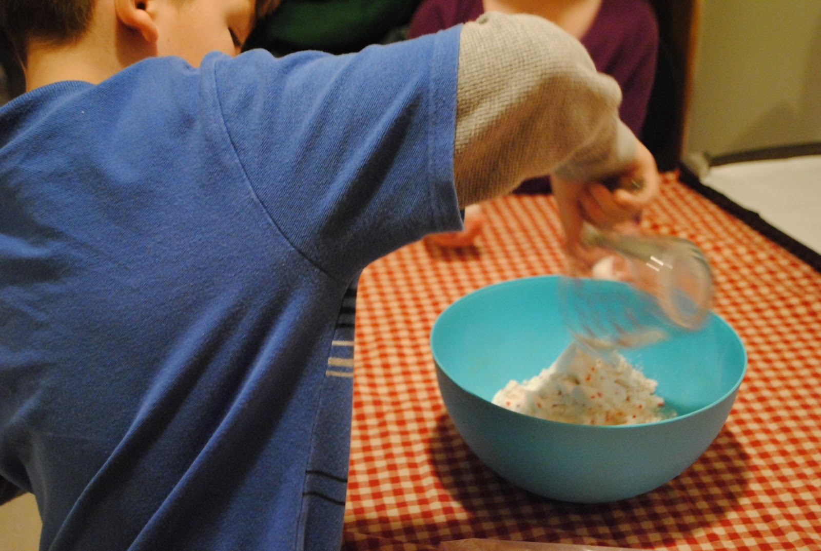 The kids got busy whipping up our dough....they're my little bakers in the making.